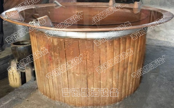 蒸酒甑桶由三大部件組成。下面燒水的鍋叫地鍋,中間木制裝料部分叫甑,上面加冷水凝酒的鍋叫天鍋。